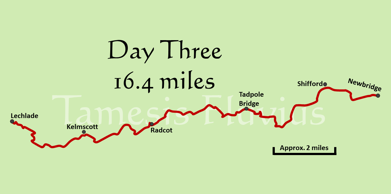 Day Three had always appeared a little daunting, right from the moment that we first planned out our schedule, simply because it was scheduled to be more than two miles longer than any other stage of the route. It is also by far the most remote part of the river, with no settlements of any significant size after leaving Lechlade, not even at the end of the day. We had been due to be camping for a second successive day, but having found it very cold and difficult to sleep over the previous night, we took the decision to abandon the other three campsites on our route and make alternative arrangements. Thankfully there was room for us at The Rose Revived pub, right by the river at Newbridge, so we knew that once we had completed the long trek there would be no additional journey to our accommodation.