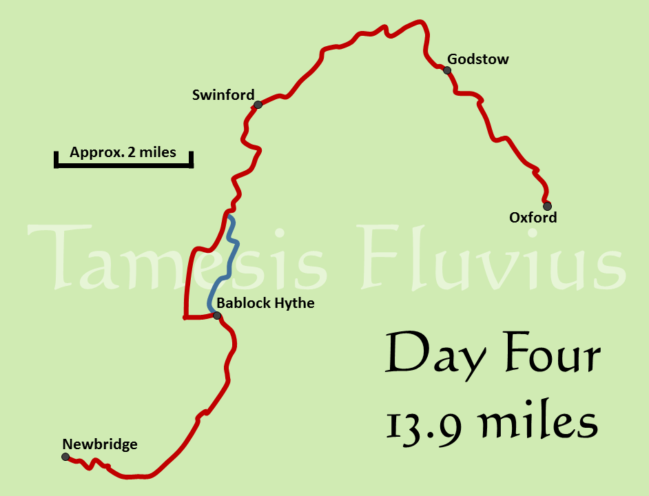 To our relief, the fourth day of our journey was to be the last when we would have to carry all of our camping equipment. Heading back to my girlfriend's flat in Oxford at the end of the day and having made alternative arrangements for accommodation everywhere we had planned to camp, we could leave plenty of things behind and make our rucksacks considerably lighter. With just three days done and twelve to go, that was a very appealing thought as we set out from Newbridge.