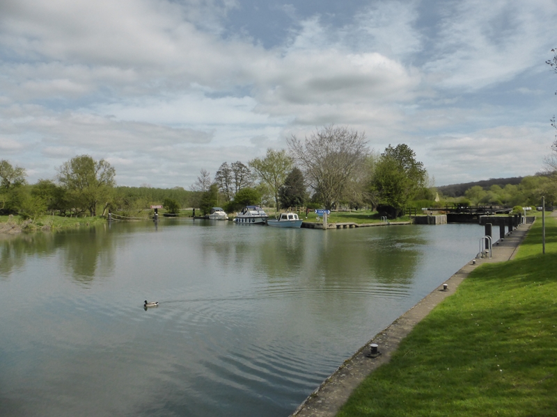 Thankfully there is only a short section of road walking to be done before the path turns away through farmland, passing through fields of sheep and lambs adjoining both Pimm Farm and Tawney's Farm. After finding a shady spot in the corner of one field to take a brief rest, we soon came to the bridleway which runs down from the village of Stanton Harcourt. Turning away from the village, we followed that track for a short time and then headed through several more fields, after which the path soon returns to the banks of the Thames. Here we passed by an abandoned rowing boat in a narrow channel off the main river, which clearly had been there for some considerable time, before reaching Pinkhill Lock and the first crossing of the day, which took us back to the southern bank.