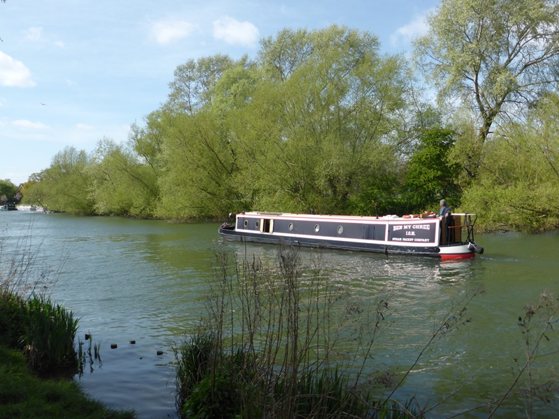 We headed on to the island of Fiddler's Elbow, which separates the navigable channel from the route leading to the 'Sandford Lasher' pool and its accompanying weir, which we could hear roaring just out of sight.After crossing a couple more islands, the path soon returned us to the western (southern) bank where we would remain until the final approach to Abingdon. The next mile or so of the path is a long, straight section of river, where boats travelling up and down stream were a regular sight. The boats become noticeably larger below Oxford, as those which cannot pass under the lower bridges are not seen further up. Large boathouses are also now an increasingly common site, both those connected with the university and those belonging to private rowing clubs.